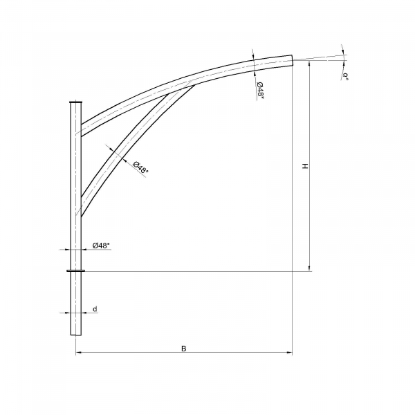 Однорожковые кронштейны К70-1,0-1,0-1-1 предназначен для крепления светильника на трубчатой опоре освещения. Завод опор освещения «Альдекс» изготавливает однорожковые консольные кронштейны из стального проката. Собственное производство позволяет выполнять изделия надлежащего качества и в кратчайшие сроки. Конструкция однорожковых кронштейнов К70-1,0-1,0-1-1. Конструкция консольных однорожковых кронштейнов К70-1,0-1,0-1-1 представляет собой гнутую металлическую трубу заданных размеров.