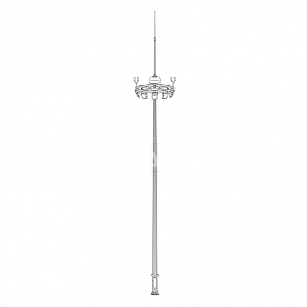 Высокомачтовые осветительные установки высотой 25 метров изготовленные на нашем заводе поставляются в комплектации с мобильной короной, анкерным элементом фундамента, эксплуатационным и монтажным комплектом.
